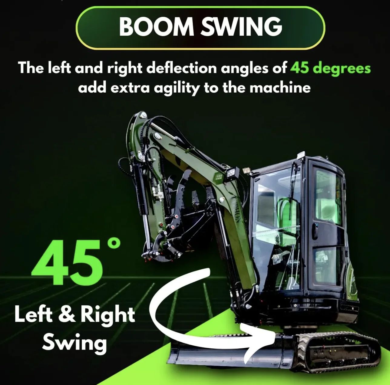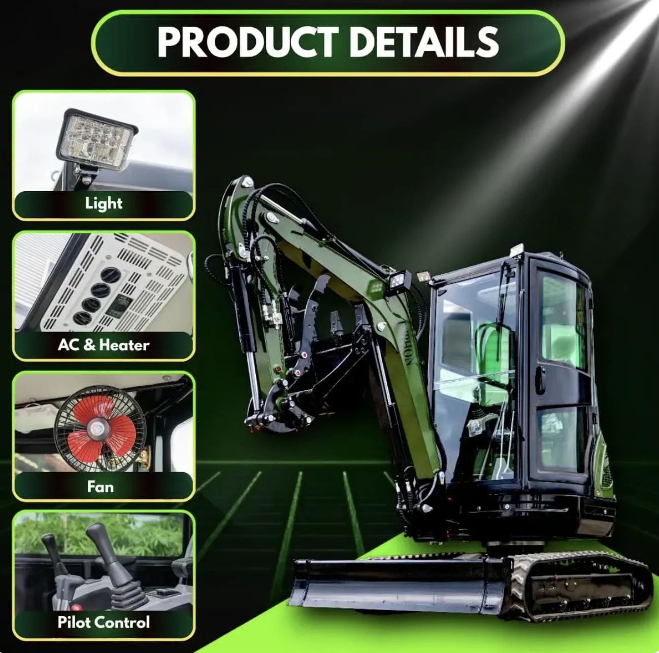 It can be used in construction, landscaping, agriculture, and home projects. From trenching and grading soil to breaking concrete, lifting materials, and performing utility work, It’s easily adapts to whatever the job requires, whether it’s lifting materials or doing utility work. Its compact design, powerful hydraulics, and quick-attach compatibility enable you to switch between attachments in seconds, transforming a single machine into a multi-purpose solution.