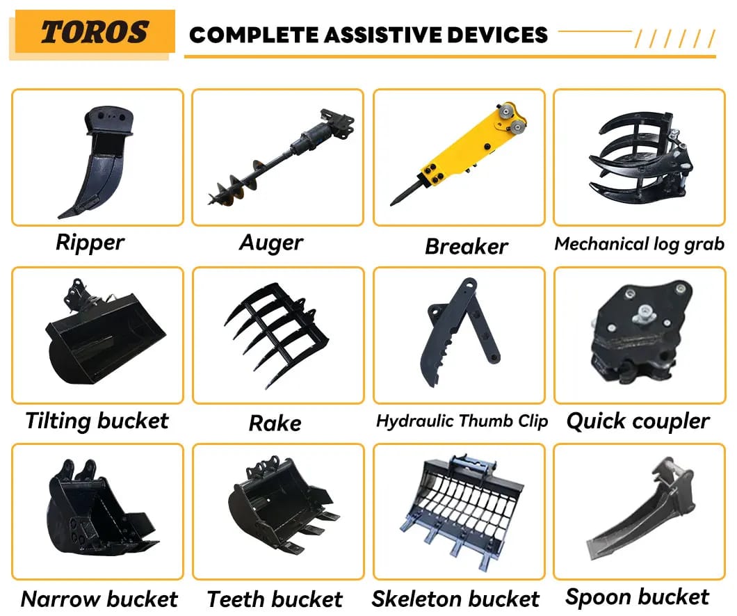 3 ton mini excavator is a collection of beautiful design, high configuration, good performance, low fuel consumption with wide operating ranges. It is suitable for loosing soil of vegetable greenhouse, municipal departments’ landscape engineering, digging holes for tree planting in orchard, crushing concrete surface and sand-gravel mixing material, small space working sites etc. Adopting quick hitch that make you change working attachment easy and fast, and also can reduce maintenance and operating cost.As a factory specializing in the manufacture of mini excavators, TOROS deeply understands the importance of product quality and service. With years of technological accumulation and industry experience, we have become a leader in the Chinese mini excavator industry, committed to providing customers with efficient, durable, and easy-to-operate excavator equipment.